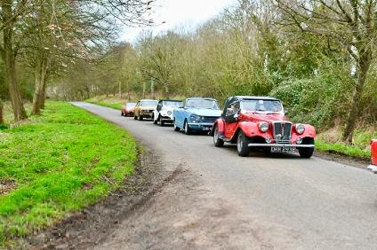 Six eager Triumphs on a lovely run, spotting snowdrops & daffodils on the way round. A welcome warm up coffee at the Lower Lode, part way round. Quick dash then to try & beat the weather, I admit I had to wind my window up on the way home..... a bit fresh & wet towards the end.